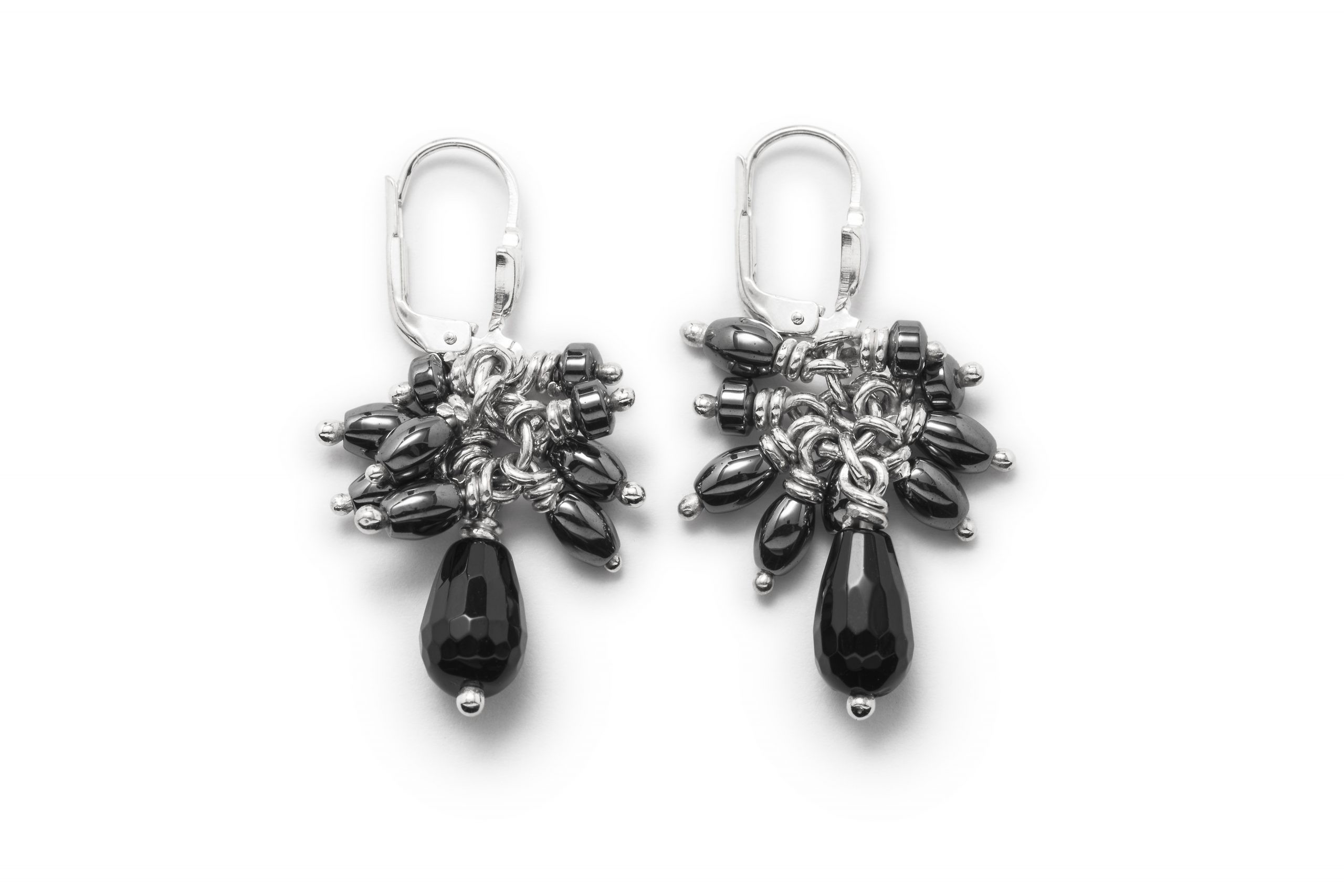 BE ORIGINAL EGOLI COLLECTION: Black Onyx Gemstone Cluster Earrings. Manufactured in 925 Sterling Silver.