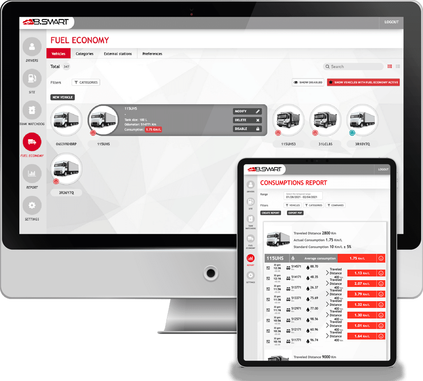 Extend the power of B.SMART with additional components for a complete management of your fleet! With the B.SMART Fuel Economy add-on you can now completely manage and increase the profitability of your fleet: