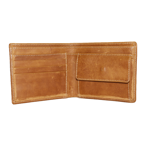 Men's Coin Pouch Wallet with 3 credit card pockets on the left, a coin pouch on the right and 2 note pockets.