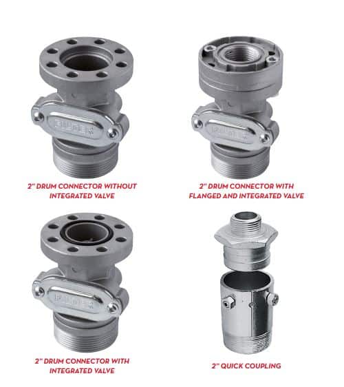 Ideal for all types of tanks with 2” connection. Thanks to the flanged connection, all the PIUSI pumps can be easily connected to the connector without the need for sealing pastes or Teflon. Integrated easy-to-inspect filter. The outer thread is compatible with all types of tanks with 2” inlet. The inner thread is compatible with our telescopic hoses or other flexible suction hoses with hose connector. Vented loops or ventilation holes. The product is available in two versions: with integrated check valve and without valve.