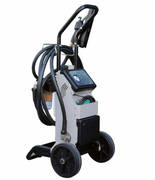 Sturdy wheeled structure, Large-diameter wheels, Flow rate 56 l/min., Filtering capacity – first stage 30 µ with water absorption, second stage 5 µ for impurities.