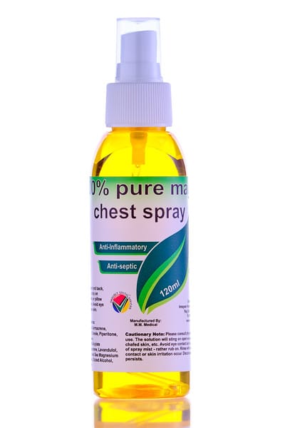 PHYTO-THERAPEUTIC MEDICINAL BOTANICALS CHEST SPRAY contains natural plant chemicals,and muscle relaxing magnesium chloride from the dead sea. Modern extraction methods such as CO 2 extraction has enabled us to extract highly concentrated plant chemicals of a very high purity,all of which are BP(Pharmaceutical)grade. After extraction the raw materials are further broken down into plant isolates such as a-pinene,globulol,menthofuran etc.