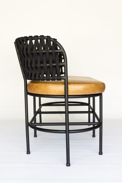 Inspired by the beautiful organic lines of the Oromo (Kemetic Africa) hairstyle in Jimma in the late 1800s. This chair is made from rolled powder coated steel with a textured rope detail and upholstered seat in luxe velvet and african inspired fabric.