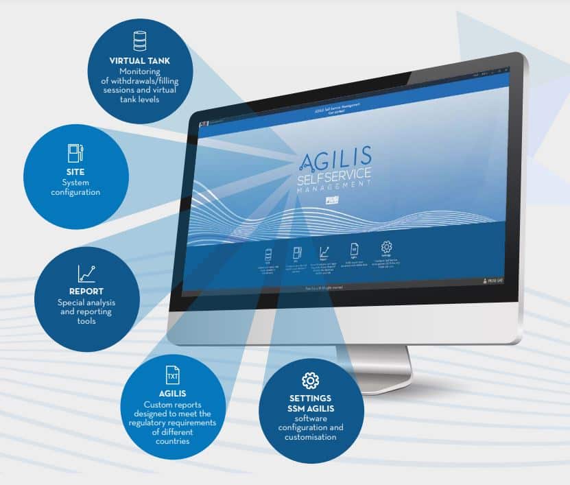 MCBOX, CUBE and SELF SERVICE MC products can be used on a stand-alone basis, but pairing them with AGILIS Self Service Management software delivers a host of extra benefits for business people. Continuously developed and updated by PIUSI, this software has become the benchmark for all fuel management systems, and is ideal for easy, comprehensive monitoring of fluid dispensing across your company’s entire vehicle fleet.
